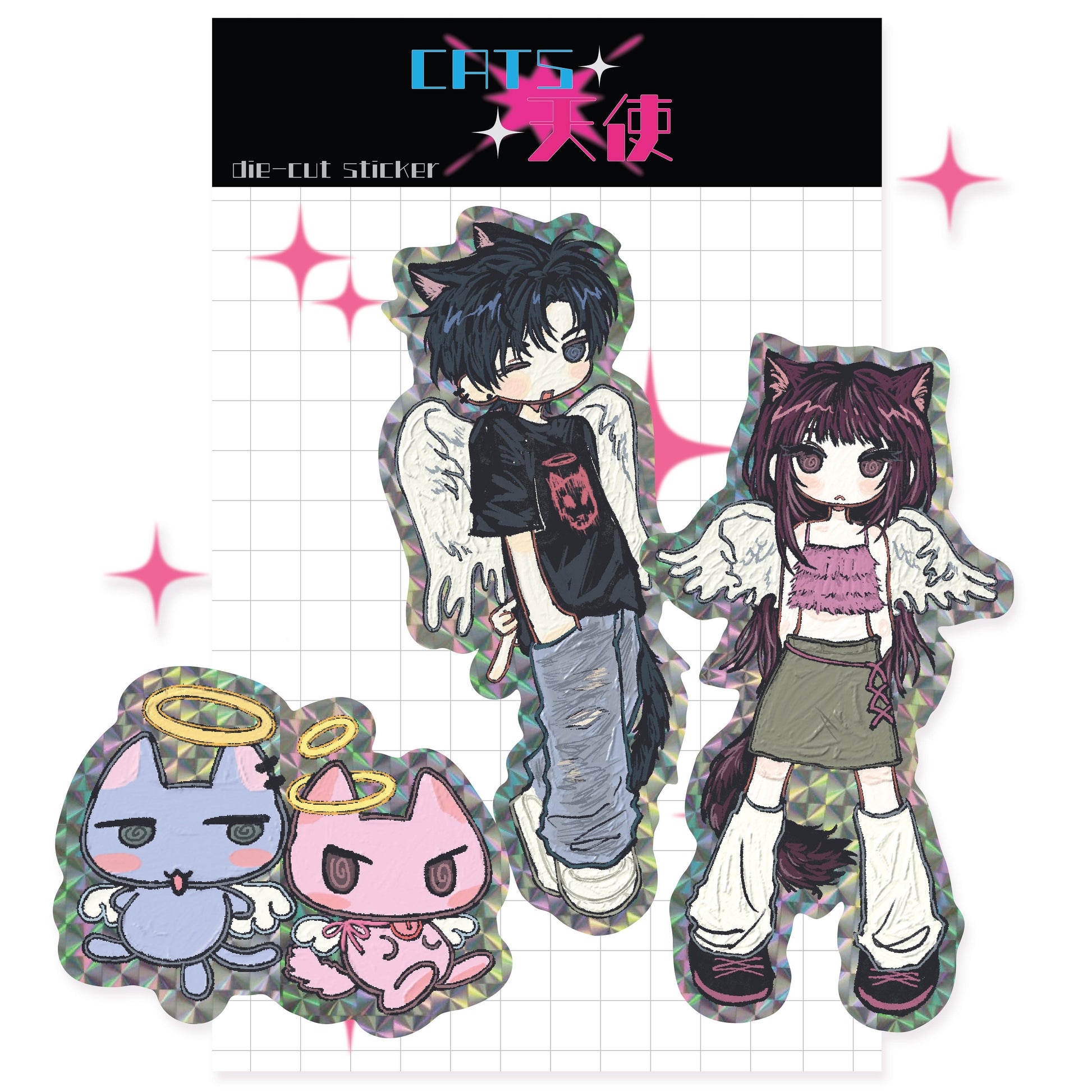♡ amustew - cats tenshi hologram die cut sticker